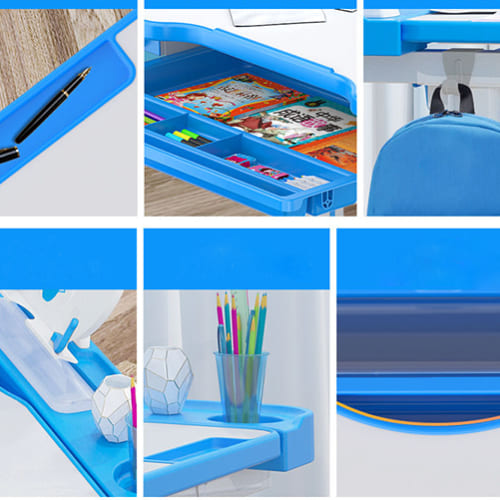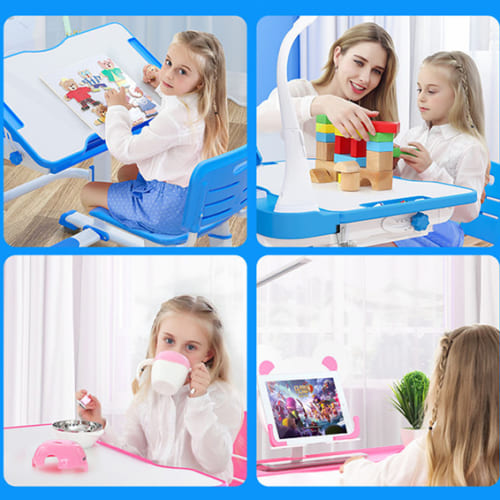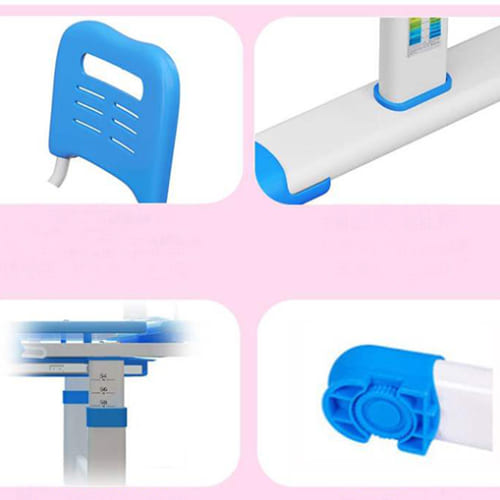 - Mặt bàn điều chỉnh được độ nghiêng dễ dàng giúp trẻ không bị mỏi cổ và mắt. Bên cạnh đó, mặt bàn được thiết kế mặt chống trượt để sách, các vật dụng không bị rơi khỏi mặt bàn