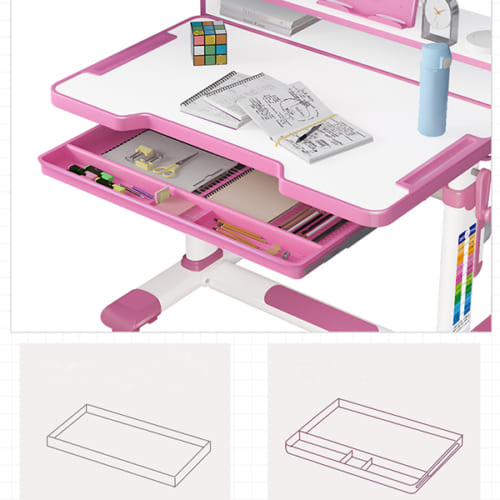 - Mặt bàn điều chỉnh được độ nghiêng dễ dàng giúp trẻ không bị mỏi cổ và mắt. Bên cạnh đó, mặt bàn được thiết kế mặt chống trượt để sách, các vật dụng không bị rơi khỏi mặt bàn