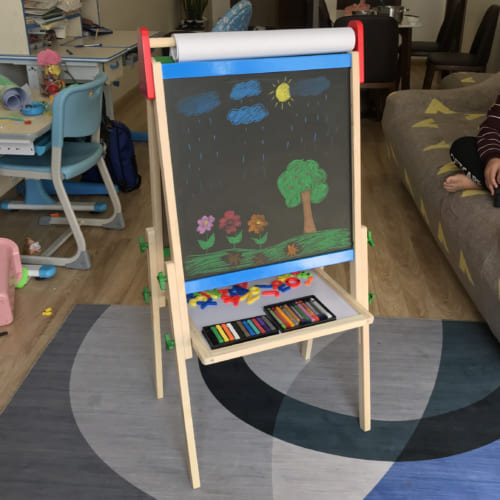 - Bảng vẽ tranh cho các con có 1 trụ để cuộn giấy để các con có thể sử dụng giấy ghim lại để vẽ