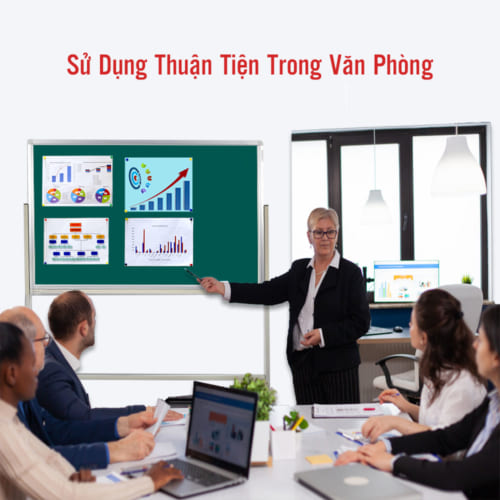 – Hít nam châm mạnh: bạn có thể gắn tài liệu, thông báo, giấy tờ, ghi chú lên mặt bảng nhờ các viên nam châm cho buổi học, buổi đào tạo thêm hấp dẫn hơn.