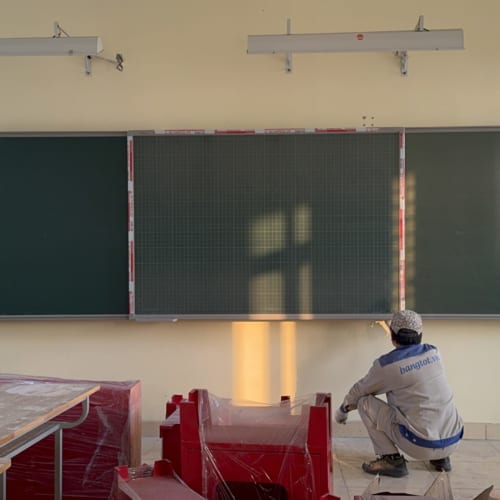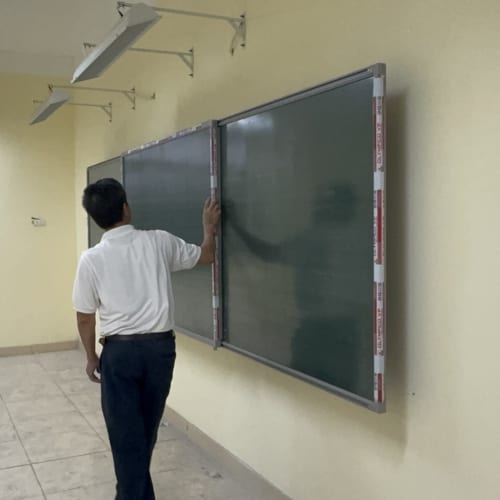 Hệ bảng trượt nguyên khối dạy học 2 lớp với 3 tấm bảng sử dụng dạy học khi kết hợp với tivi hay màn hình tương tác Với công nghệ sản xuất hiện đại, bề mặt bảng được sơn phủ Nano cao cấp giúp chống lóa tuyệt đối. Bảng xóa siêu sạch, không bám bẩn giúp mang đến sự thoải mái và tiện ích cho người dùng. Sản phẩm được Bangtot.vn sản xuất và phân phối với kích thước đa dạng cho khách hàng lựa chọn.